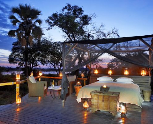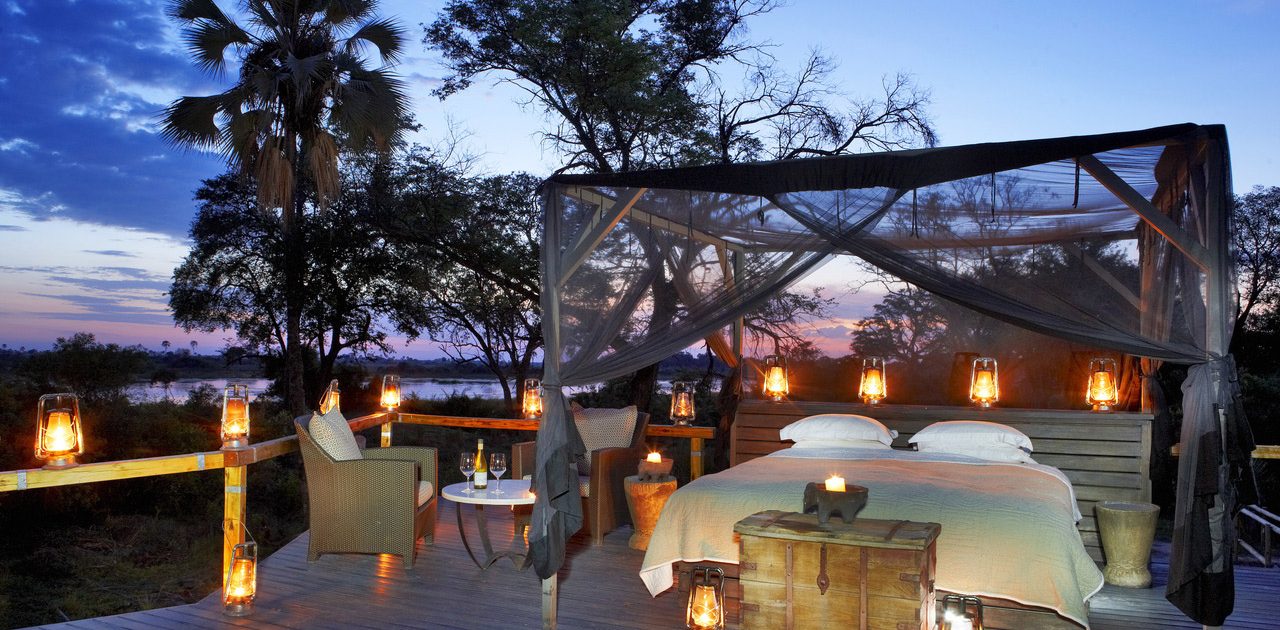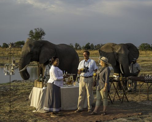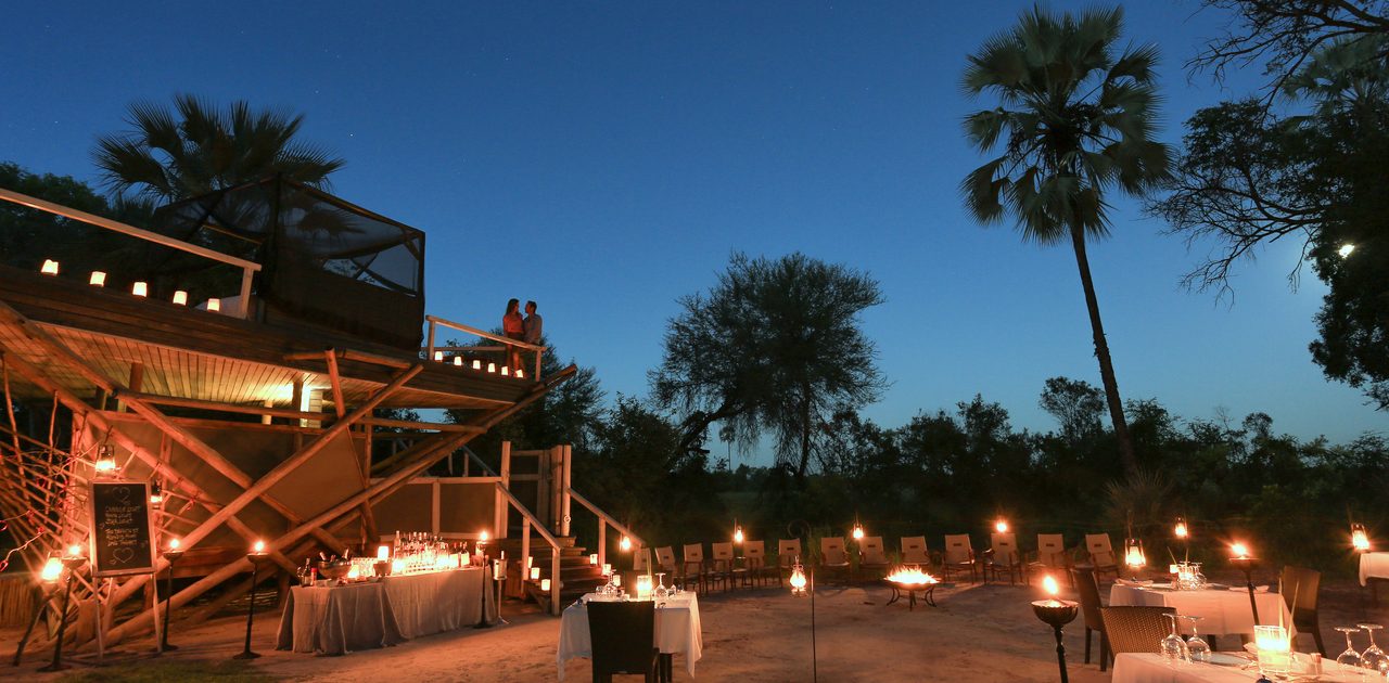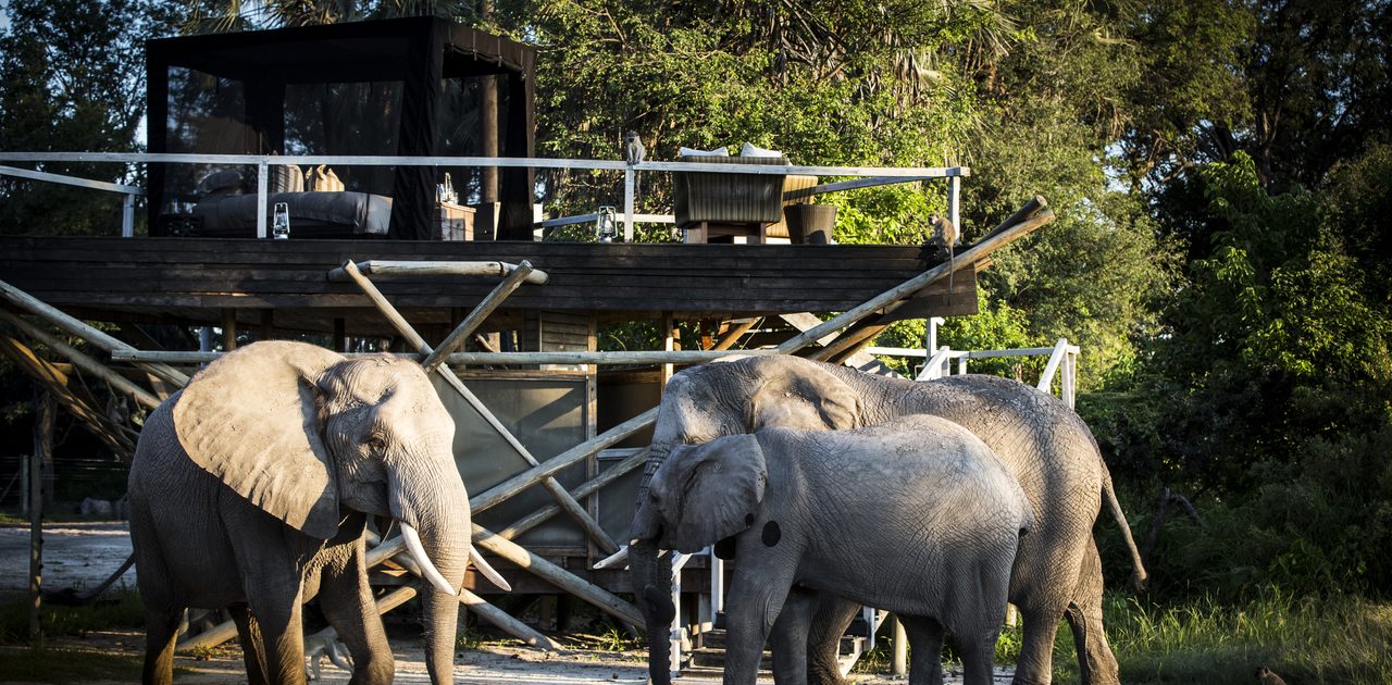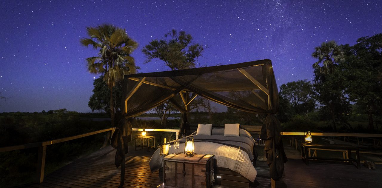 Previa solicitud, los huéspedes serán acompañados después de cenas hasta la gran cama doble Star, durante una de las noches de estancia en Abu Camp. Aquí, elevados respecto del suelo, dormirán bajo un increíble dosel de estrellas, icono de hemisferio sur, al tiempo que dormirán arrullados por los barritos y los ronquidos de los elefantes.