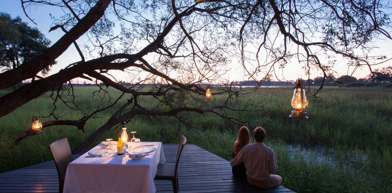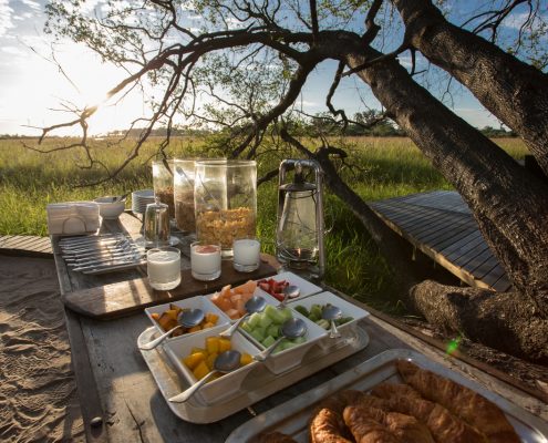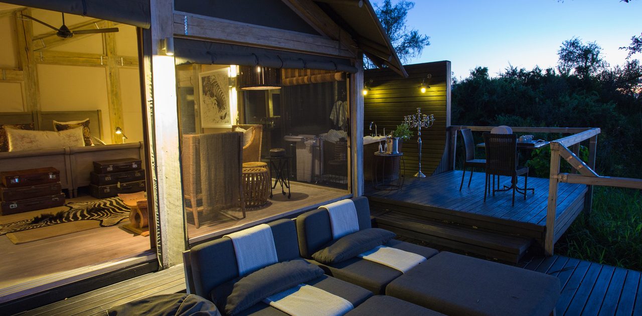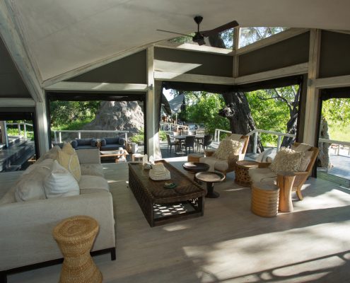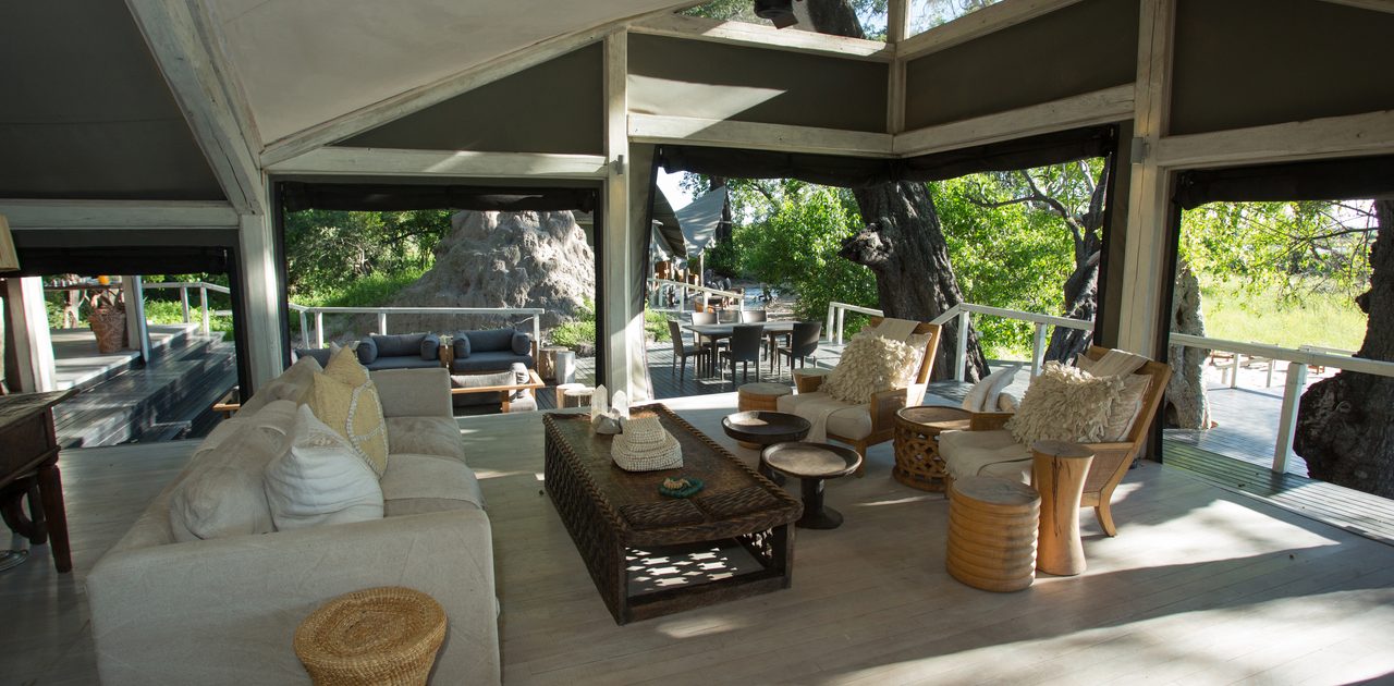 Para reflexionar, relajarse e incluso meditar, existe una confortable sala de estar en el interior de cada tienda, que dispone de escritorio y de un terraza privada de madera que ha sido modelada para adaptarse a las majestuosas higueras y a los árboles de ébano africano que proporcionan sombra a las tiendas. Las vistas panorámicas, de la clase que sólo el Delta de Okavango puede proporcionar, se pueden disfrutar en la habitación desde todas las perspectivas.