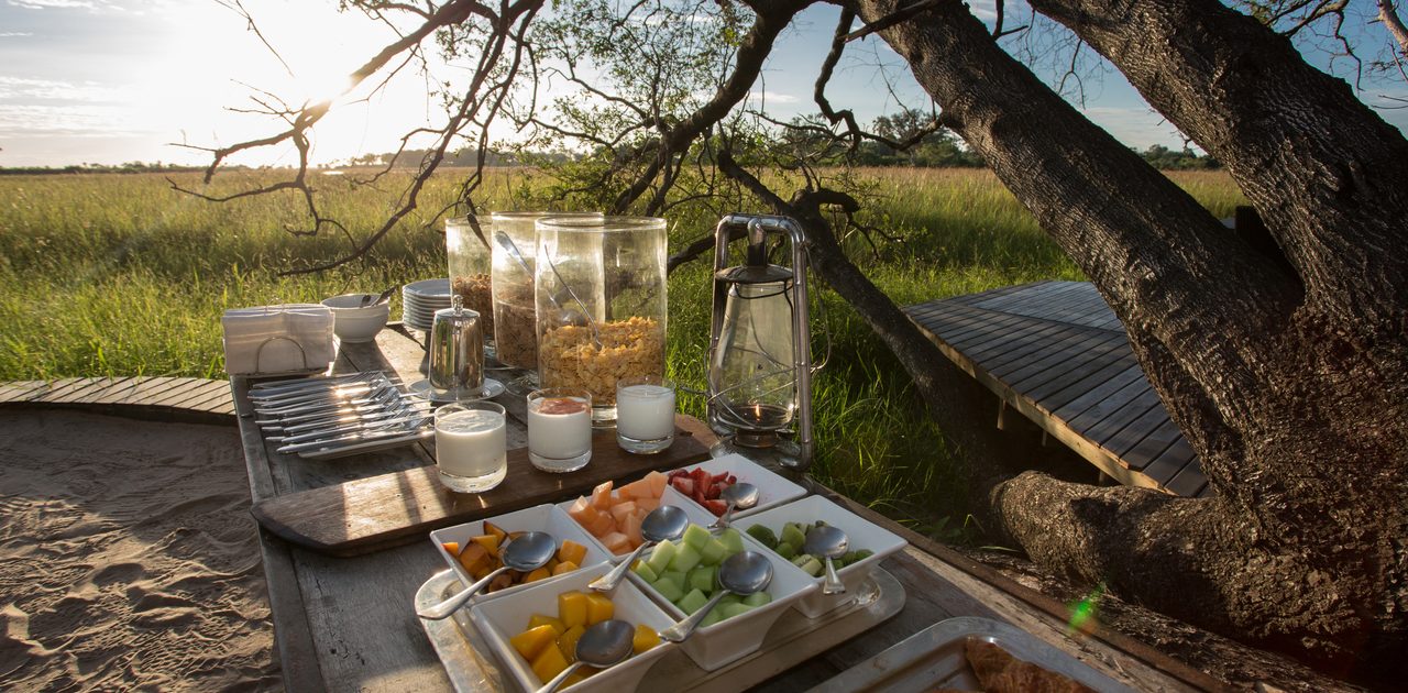 Se ha tomado prestado de las culturas africanas locales artículos para el hogar, tejidos de lino hechos a mano, vainas de cerámica, sillas tejidas con juncos y piezas de madera talladas a mano, que proporcionan al campamento el elegante carácter del Delta el Okavango.
