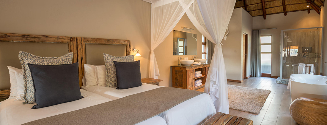Arathusa Safari Lodge cuenta con 8 suites de lujo distribuidas en el perímetro del campamento. Cada unoa de ellas cuenta con un baño equipado con bañera y duchas interiores y exteriores, y una galería o terraza desde donde podrá disfrutar confortablemente la vida salvaje en los alrededores. Algunas de las suites cuentan con una cama doble, y otras con 2 camas separadas.