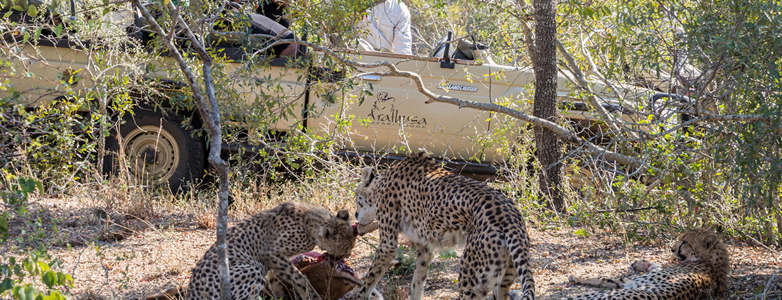 Durante su estancia en Arathusa disfrutará de 2 salidas de safari en vehículos especiales abiertos, al amanecer y al atardecer, guiados por 1 equipo compuesto por un experto ranger y un rastreador local, que le garantizarán una experiencia de safari de primera clase.