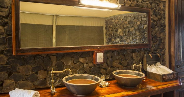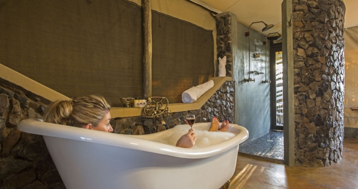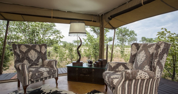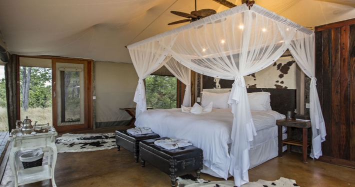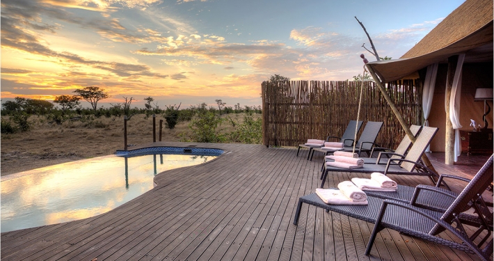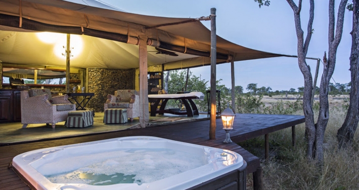 Este campamento privado y exclusivo ofrece alojamiento de lujo en 5 tiendas de campaña tipo suites en un entorno idílico. Todas las habitaciones están comunicadas a través de una pasarela de madera y hay un gran salón y zona de comedor. La piscina tiene vistas al abrevadero, lo que ofrece a los huéspedes la oportunidad de ver la vida silvestre mientras toman un refrescante chapuzón.