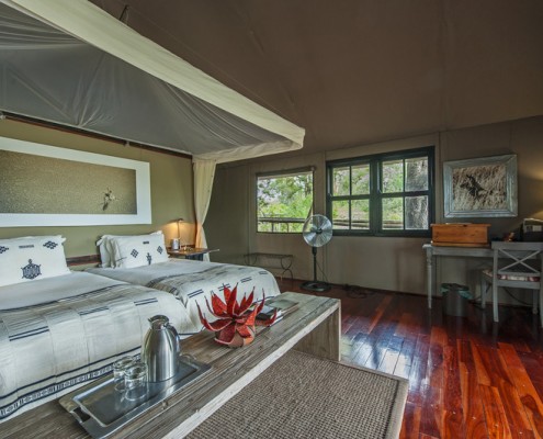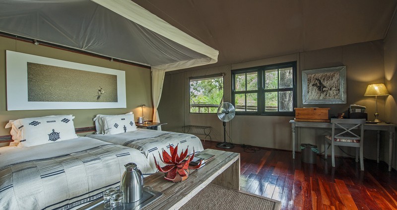 - Todas las habitaciones a base de lujosas tiendas de lona de estilo safari, sobre plataformas elevadas del suelo.