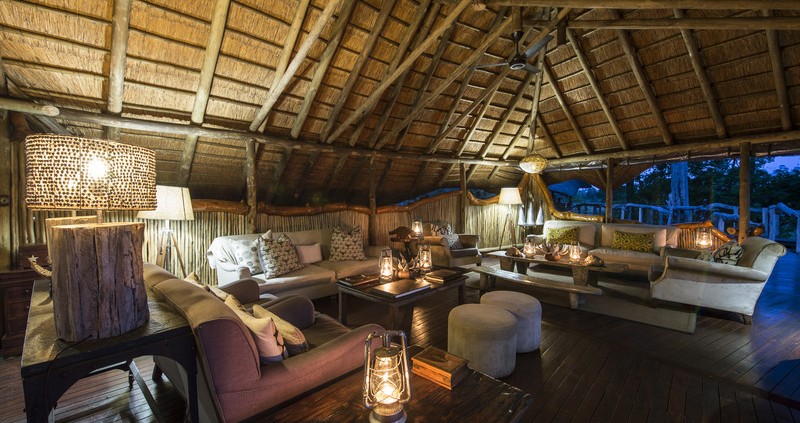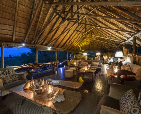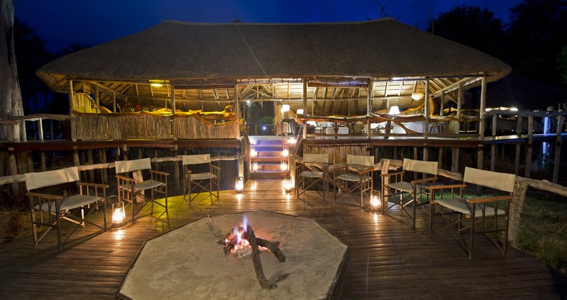 El comedor con tejado de paja, la zona de bar y la sala de estar están construidos sobre plataformas elevadas para proporcionar espectaculares vistas de las inundadas planicies del Delta del Okavango.