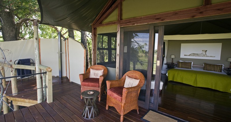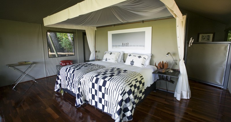 Las ocho espaciosas tiendas de estilo Meruestán construidas sobre terrazas de madera que sortean los árboles del Delta del Okavango.
