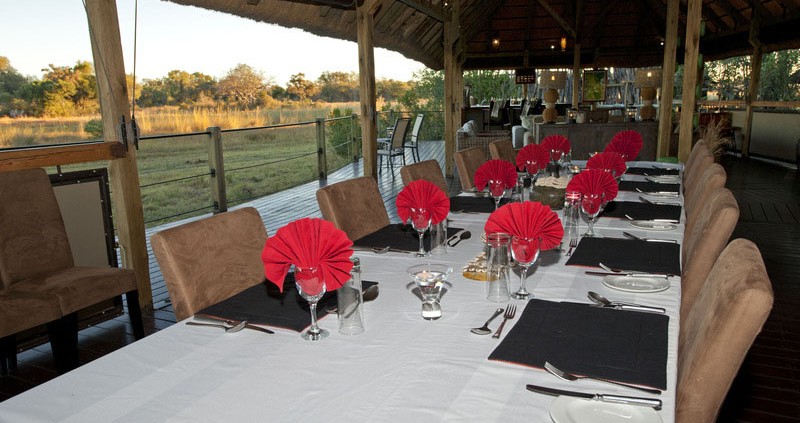 En los safaris de tarde normalmente se regresa después de haber anochecido con la esperanza de avistar los animales nocturnos más tímidos del Delta del Okavango, tales como jinetas, gato de algalia, serval, puercoespín y, en raras ocasiones y el lobo de tierra.