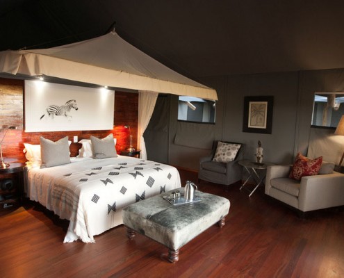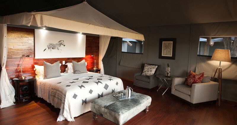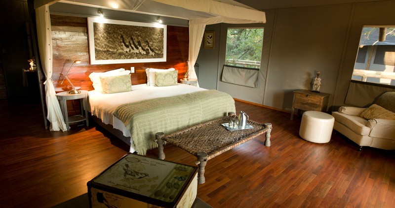 - Lujosas tiendas de lona de estilo safari, sobre plataformas elevadas del suelo.