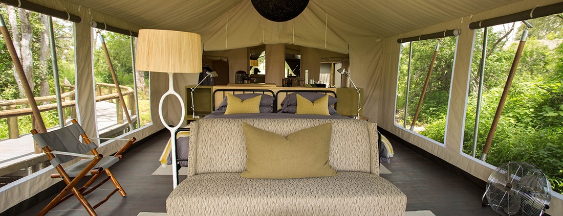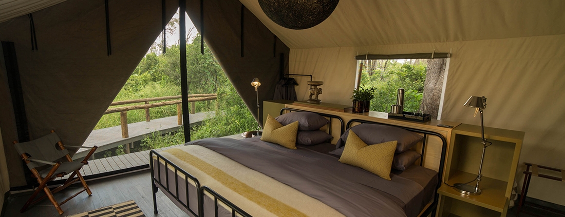Este nuevo campamento cuenta con 10 tiendas de lujo que incluyen 2 tiendas familiares y 8 tiendas dobles, todas con baño privado. Además de los safaris en vehículos 4×4 diurnos y nocturnos, el campamento ofrece actividades acuáticas como excursiones en mokoro y en lancha motora.