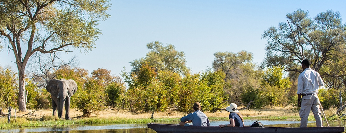 Se trata de una canoa tradicional de madera llevada por un experimentado guía por las aguas poco profundas del Okavango. Es una gran manera de poder observar las vías fluviales de una forma relajada y tranquila. Estas excursiones se realizan al amanecer o se pueden organizar excursiones más largad de día completo.