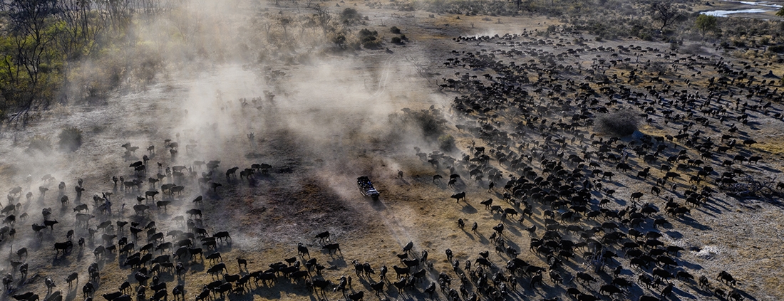 El área que rodea el lodges conocida por sus grandes concentraciones de vida silvestre que habitan las llanuras y vías fluviales de Gomoti.