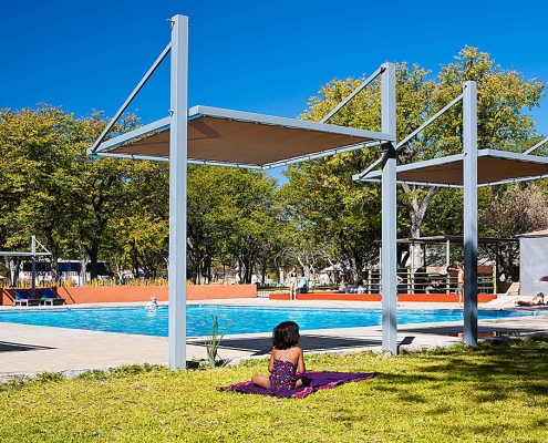- Bush Chalet (4 adultos): acogedor chalet con dos dormitorios, baño y salón. Equipado con área para barbacoa, nevera y tetera.