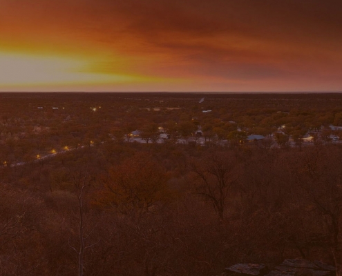 Las instalaciones en Halali Resort incluyen un restaurante, bar, tienda, piscina y zona para acampar, además de un excelente waterhole que se ilumina por la nocha, y que se puede observar desde una posición elevada.