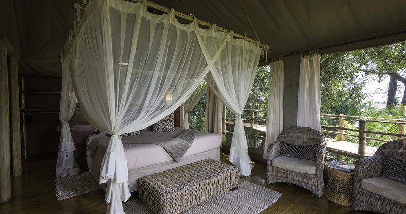 El comedor principal se sitúa sobre una plataforma elevada entre dos magníficas higueras y rodeado de una densa vegetación de palmeras datileras. Jacana Camp además dispone de una acogedora sala de estar con un área exterior donde preparar hogueras bajo las estrellas, y una pequeña piscina en la que refrescarse bajo el sol del mediodía.