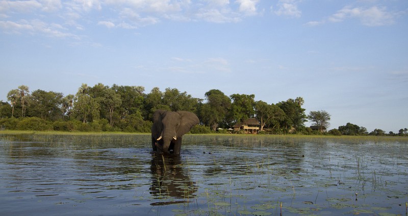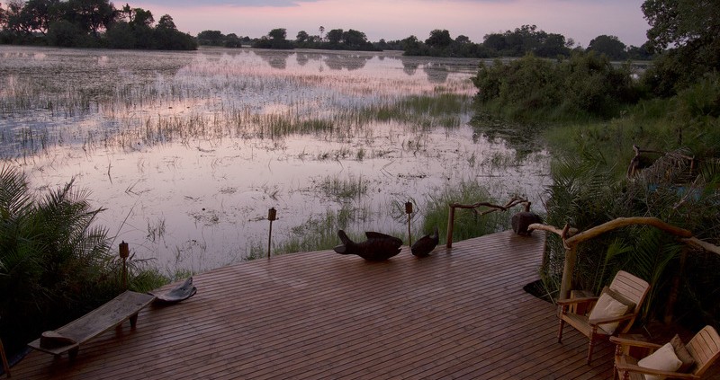 Situado en una preciosa isla y rodeado por una planicie estacionalmente inundada y por marismas de papiro, Jacana Camp consiste en cinco tiendas de estilo Meru construidas sobre plataformas de madera elevadas para facilitar las vistas panorámicas sobre el Delta del Okavango. Cada tienda dispone de un baño privado independiente, cuyo rasgo principal es una ducha sin techo, que es iluminada parcialmente por la luz del sol o por las estrellas durante la noche.