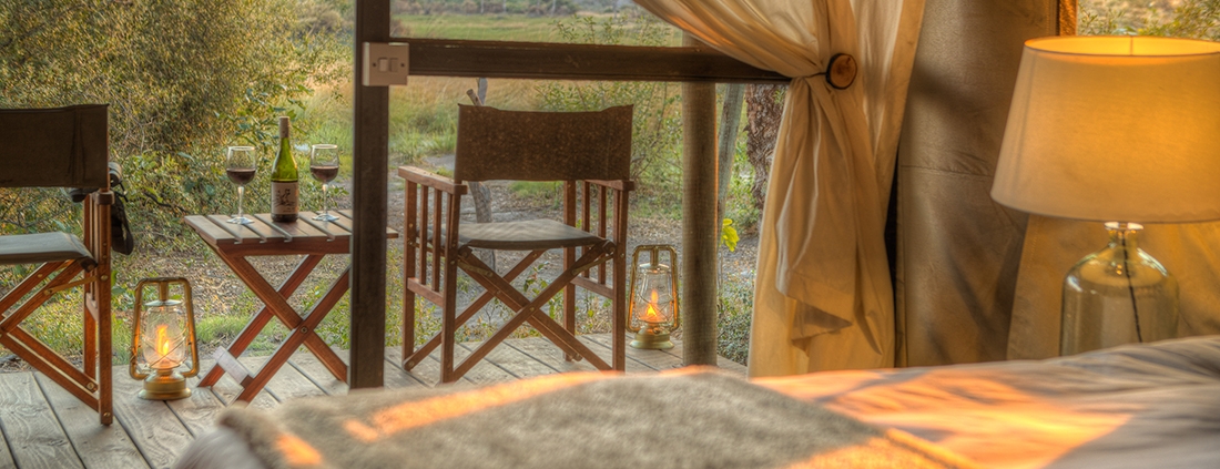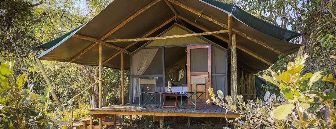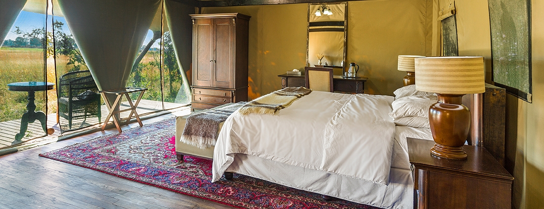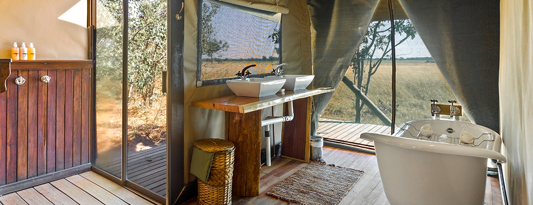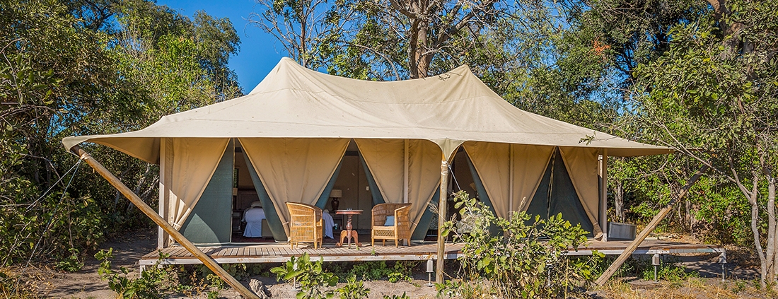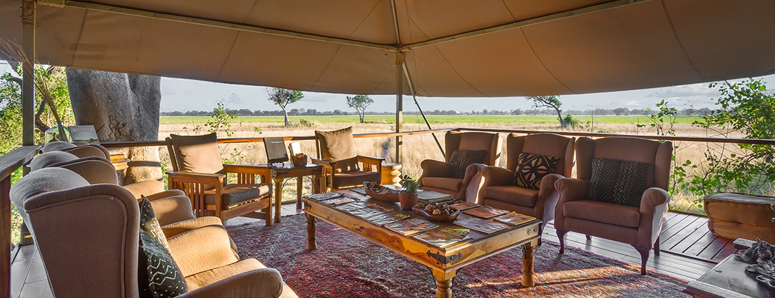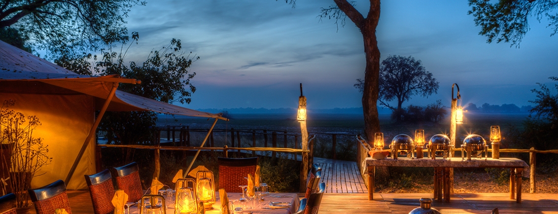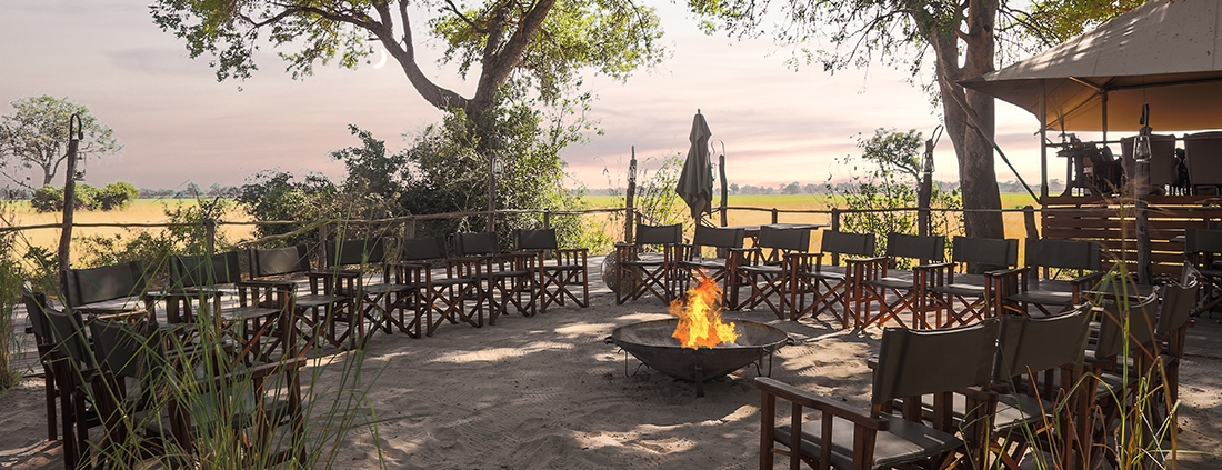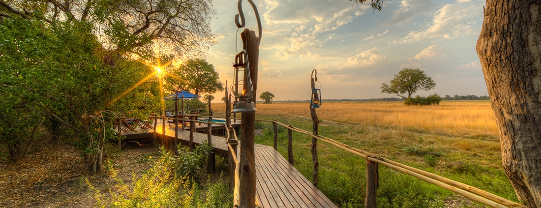 El Kadizora Camp está situado entre el río Vumbura y el área de Selinda. Se encuentra en la parte norte del delta del Okavango más remota con vistas panorámicas de las llanuras inundadas de forma estacional.