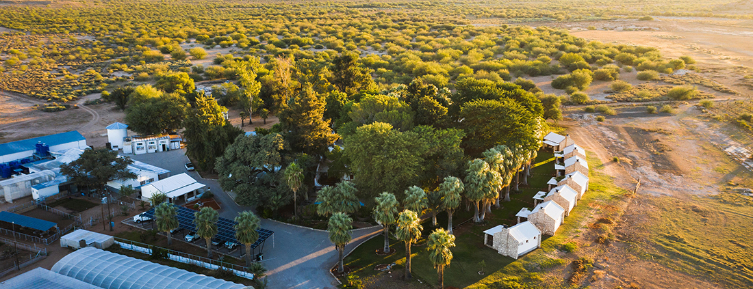 Situado en mitad del Kalahari, en los márgenes del pueblo de Stampriet, en el fértil valle del río estacional Auob, Kalahari Farmhouse combina la hospitalidad refinada con un ambiente rural. La recepción y el restaurante se emplazan en una casa señorial construida en el momento de auge de la agricultura hace 50 años.