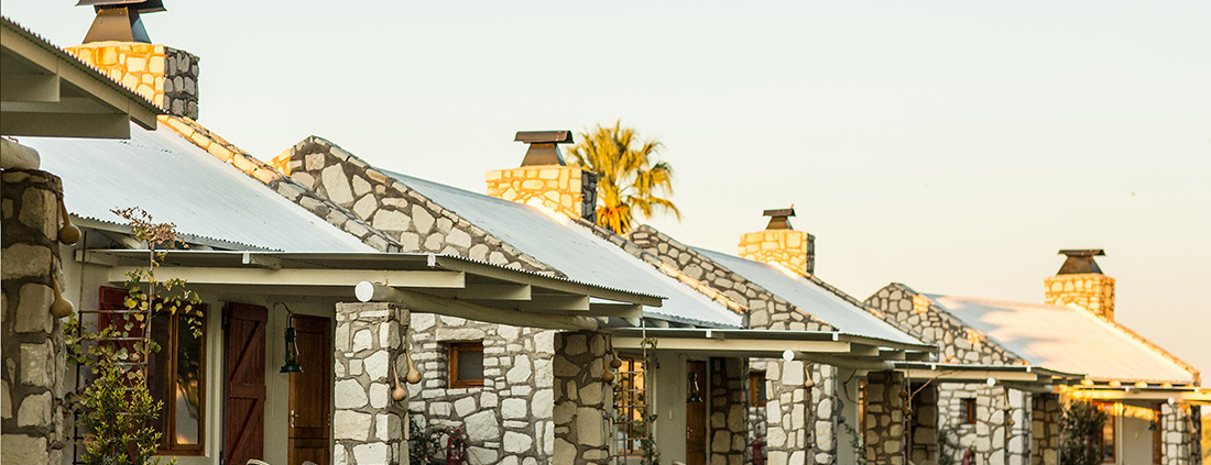 Kalahari Farmhouse es un pequeño alojamiento que cuenta con un total de 8 habitaciones dobles, todas ellas con vistas a los exuberantes jardines verdes de la antigua granja. Cada habitación tiene dos camas individuales y baño privado (solo duchas), y todas tienen aire acondicionado, menaje para preparar té y café gratuito y una pequeña terraza con vistas al jardín.