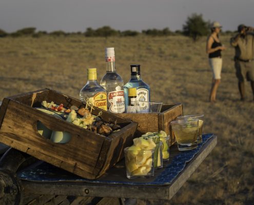 - Paseo con bosquimanos, que es dirigido por personal del campamento que son descendientes de bosquimanos. La experiencia permite entender como vivían y sobrevivían los bosquimanos en el duro desierto del Kalahari así como comprender su cultura ancestral y la relación humilde y discreta que mantienen las unidades familiares con el medio ambiente.