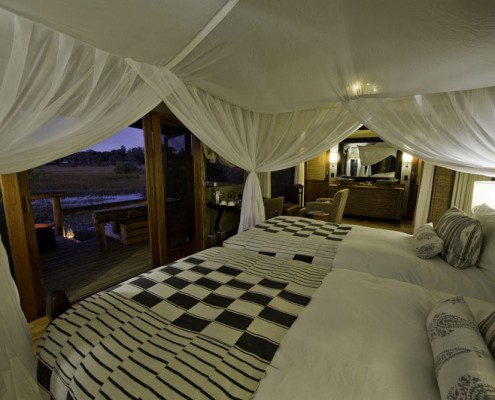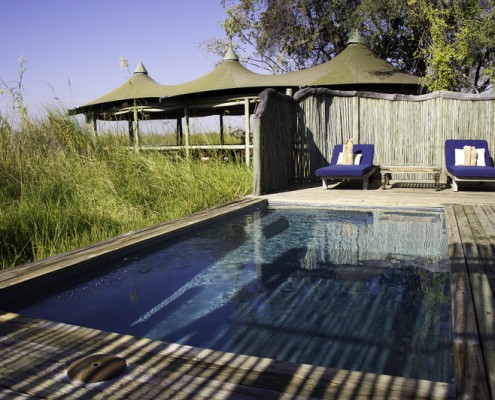 Little Vumbura Camp está situado en una isla dentro de una concesión privada en el extremo norte del Delta del Okavango, en la misma región que su “hermano mayor”, Vumbura Plains.