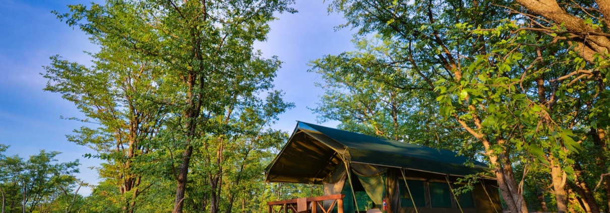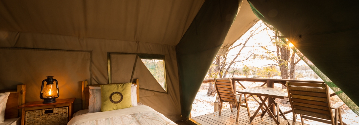 Cada una de las 10 tiendas de campaña está elegantemente encaramada en una estructura de madera y dispone de balcón con vistas panorámicas al valle. Todas tienen baño privado con ducha y un dormitorio con dos camas individuales o cama doble, mesitas de noche, sillas de safari y espacio para colgar. En definitiva, todas las comodidades necesarias para disfrutar de una experiencia única en Moremi.