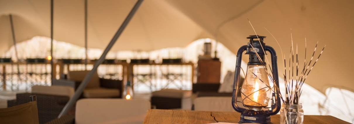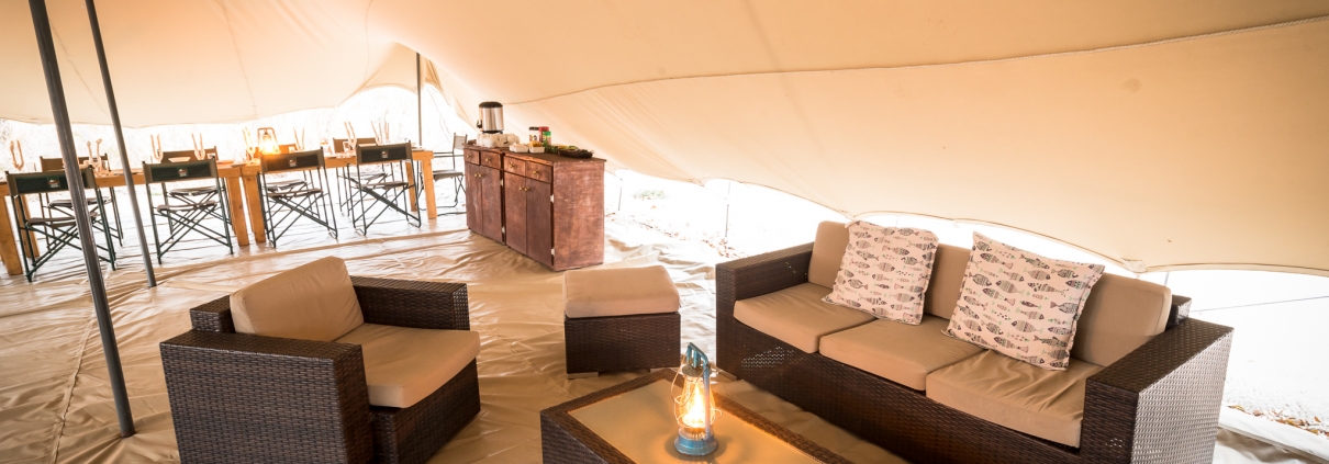 Cada habitación tiene capacidad para dos personas y tiene un baño privado en suite con ducha, aseo y tocador con jabón, champú y loción de cortesía. Una gran solapa de lona desplegable se puede cerrar entre el baño y el dormitorio para ofrecer privacidad mientras que las ventanas y la entrada frontal de la tienda están blindadas con mosquiteras y otras solapas de lona.