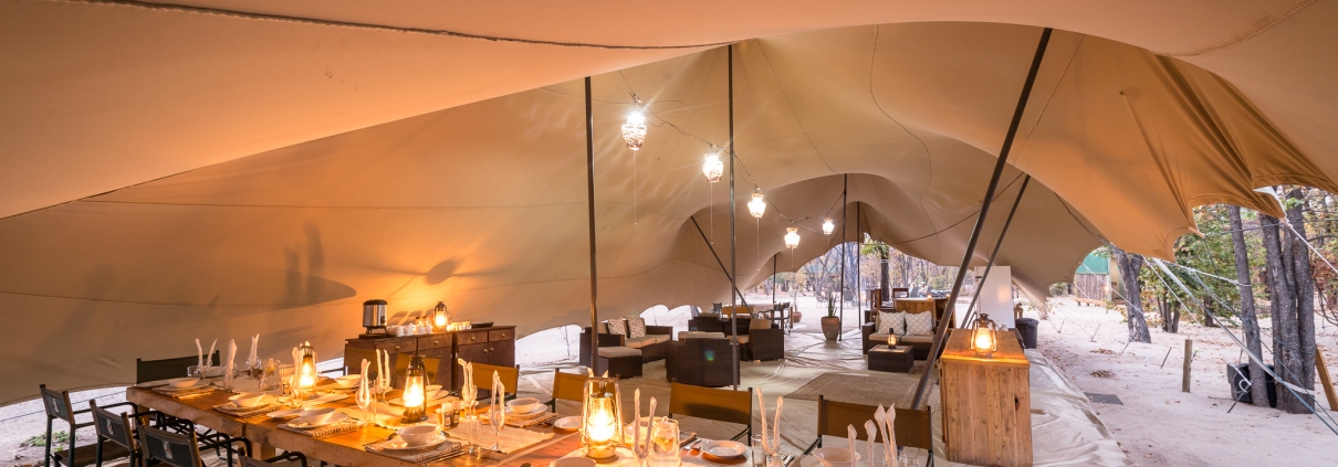 Las 8 suites tiendas de campaña de estilo Merv están erigidas individualmente sobre plataformas de madera elevadas, que se extienden sobre cubiertas privadas con vistas al bush. Los altos árboles de mopane que rodean Mankwe proporcionan sombra a cada tienda de campaña, y doseles de lona cubren las zonas comunes y los muebles de exterior.