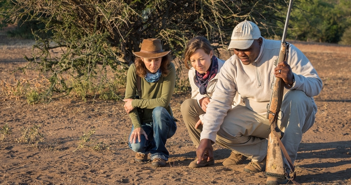 - Ruta de varios días (safari móvil): Safaris a pie hechos a medida que se adaptan a la disposición de los clientes en safari, recorriendo diferentes zonas. Las distancias recorridas por día dependen de la capacidad y preferencia de los huéspedes. No hay límite en el número de noches que realizan el safari a pie. Sin embargo, se sugiere un mínimo de 3 noches. Los huéspedes acampan en uno de los tres campamentos en el bush diseñados específicamente para su comodidad. El equipaje se transporta en vehículo entre campamentos para dar a los huéspedes la oportunidad de disfrutar al máximo del paseo, sin tener que llevar equipaje.