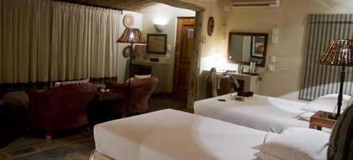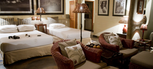 Cuenta con 14 lujosas suites, ubicadas a lo largo del perímetro del camp, ofreciendo total intimidad. Cada una de ellas cuenta con una delicada decoración, con espectaculares imágenes en blanco y negro de la fauna salvaje que crean un ambiente muy especial. Están equipadas con aire acondicionado, gran cama doble, una zona de estar con confortables sofás frente a la gran cristalera que da paso a la terraza, un amplio baño, con zonas separadas de baño, ducha y retrete.
