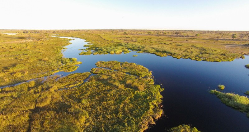 En la zona del sur del Delta, en los alrededores de Moremi Crossing, se disfruta de amplias vistas de las llanuras aluviales de la reserva de Moremi.