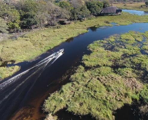 Moremi Crossing se encuentra en la zona más meridional de Chief’s Island, en una pequeña isla repleta de palmeras y diferentes árboles, llamada Ntswi. Esta isla está rodeada por las ricas planicies aluviales de Moremi. El acceso se realiza en avioneta, tras un corto vuelo escénico desde Maun de unos 20 minutos de duración.