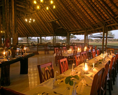 El comedor, el bar y el lounge están cubiertos por un alto techado de paja que se fusiona con la antiquísima línea arboréa de las riberas del río acentuando sus más bellos valores. Moremi Crossing cuenta además con varios lounges más pequeños en los que podrá disfrutar de espacio, privacidad y confort.