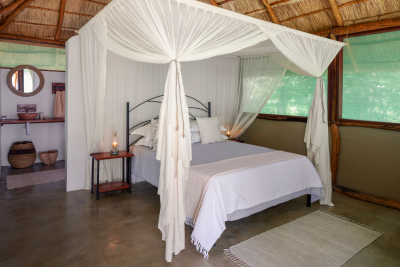 Nanzhila Lake Camp cuenta con tan sólo 3 tiendas safari, bajo techo de paja. Es decir un máximo de 6 viajeros cada día. Cada tienda cuenta con su propio baño privad con inodoros y agua caliente.