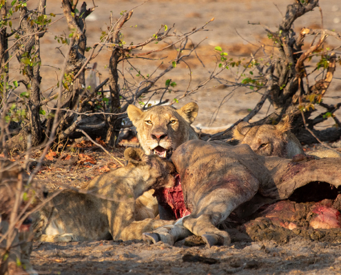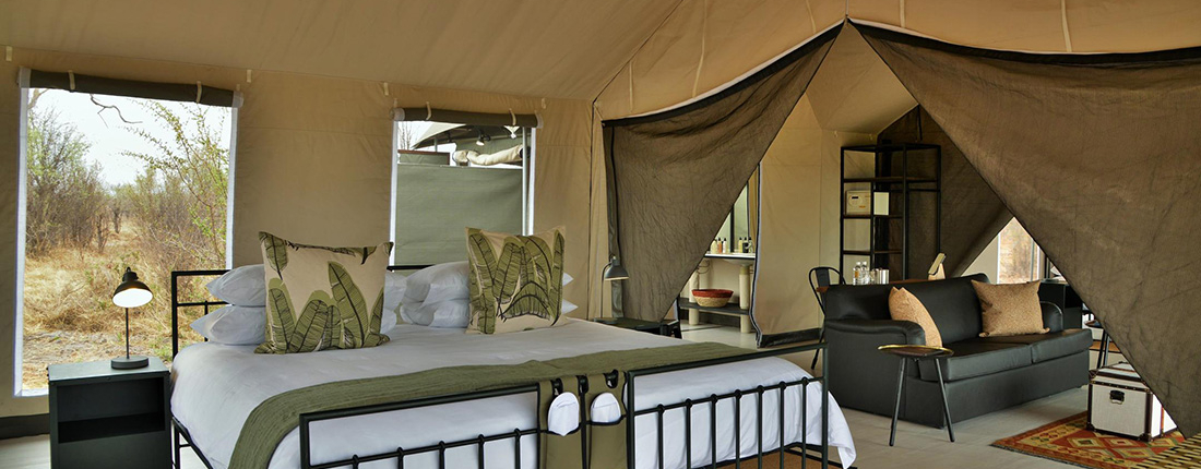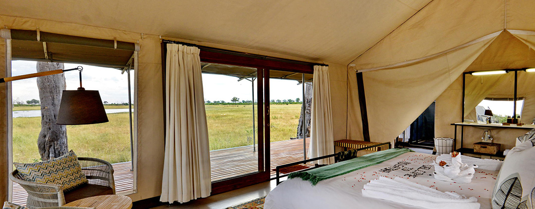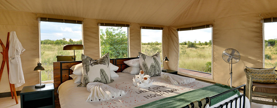 Enclavado en lo profundo del remoto e intacto corazón del PN de Chobe a sólo unos 70 km del río Chobe, y con vistas al vasto Kwikamba Pan, el lodge, único en la zona, ofrece una verdadera aventura de safari, tanto durante las salidas en 4×4, como cuando simplemente estás sentado en la baranda de tu tienda, o la zona del restaurante. Con vistas al estanque de agua, simplemente con tu bebida, disfruta del continúo desfile de elefantes, jirafas, antílopes, hipopótamos que viven en el estanque… y por supuesto depredadores, como leones. Todos son visitantes diarios de este punto permanente de agua.
