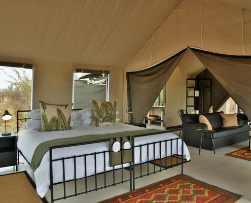 Nogatsaa Pans Chobe Lodge cuenta con 10 lujosas tieneas, todas ellas posicionadas para disfrutar de vistas panorámicas de los pans de Kwikamba, y el estanque, lo que permite ver a los animales que vienen a beber desde la comodidad de su tienda de campaña.