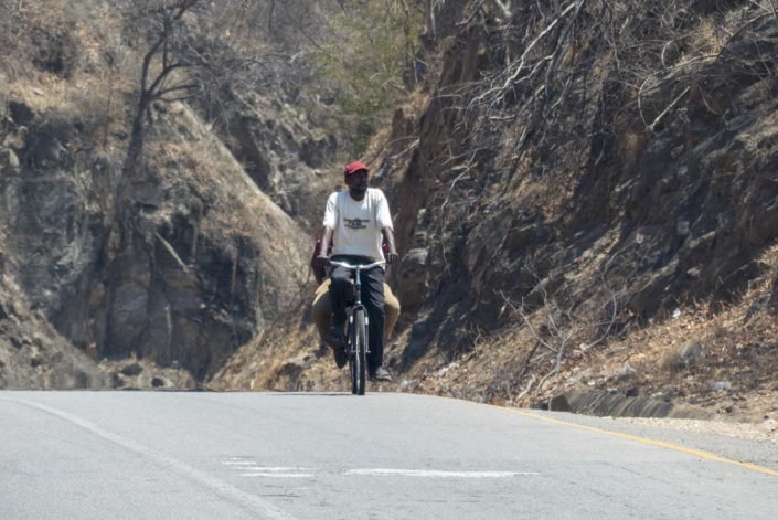 La carretera se presentó con las mismas características que el día anterior. poblaciones, color, gente en la carretera…. Y más montañas: la cadena llamada «Zambezi Escarpement«. Cuanto más aprenderíamos unos días más tarde sobre estas montañas!!!! Ya os contaré.