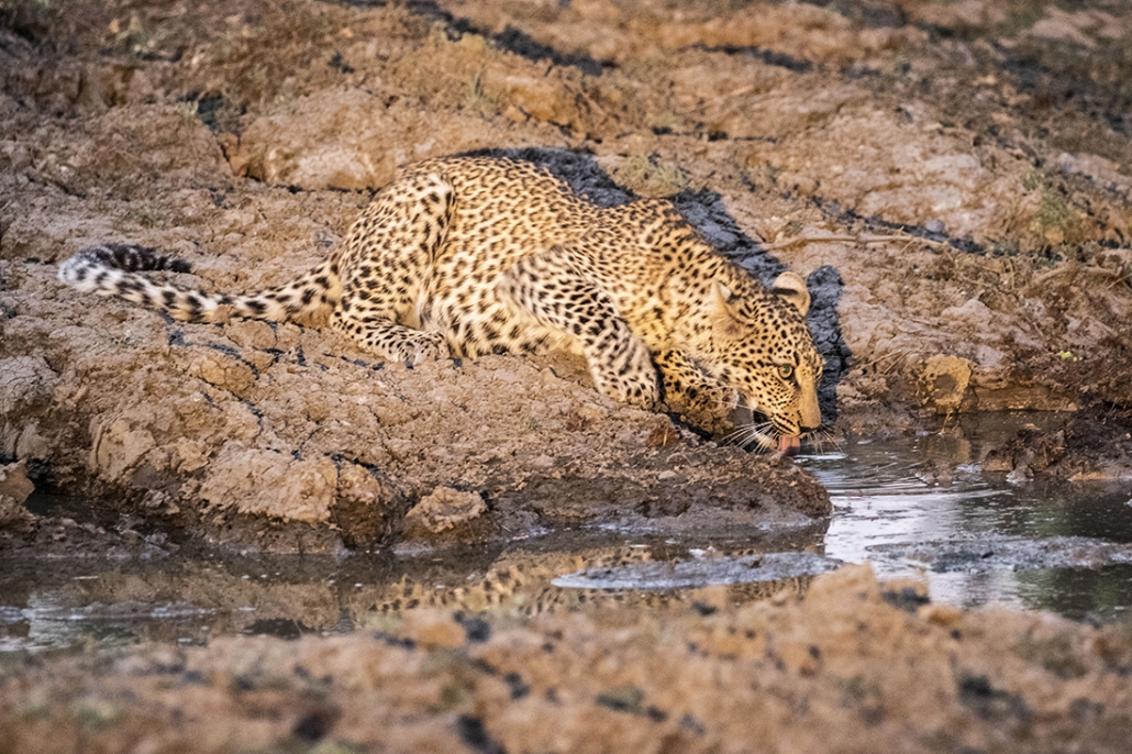 Sobre las 15.00 de la tarde en el mes de Noviembre en Zambia, hace calor, mucho calor. Y nuevamente tuvimos la oportunidad de refrescarnos en la piscina privada de la  habitación antes de volver a sentarnos en el coche de safari. Y el protocolo se repitió: excelentes avistamientos con luz del día; parada a disfrutar de una bebida y una espectacular puesta de sol, y un excitante safari nocturno de regreso, para terminar con una deliciosa cena en el lodge.