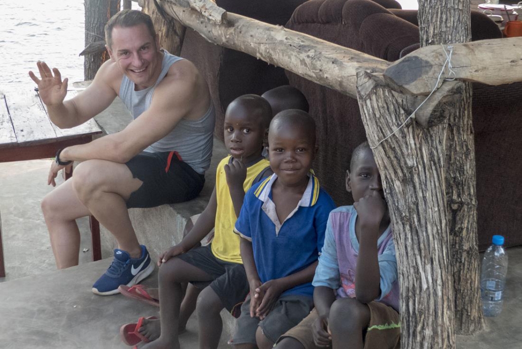Y aquí apareció el espíritu africano: nos dio explicaciones sobre como llegar. Pero creo que consideró que seríamos incapaces de llegar por nosotros mismos y se dio la vuelta para guiarnos hasta la pequeña aldea de Kavalamanja. Desde aquí ya nos indicaron como llegar al embarcadero, donde el personal de Redcliff Zambezi Lodge nos esperaba para llevarnos en lancha navegando el río Zambezi al alojamiento, única forma de llegar.