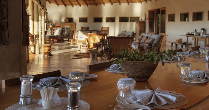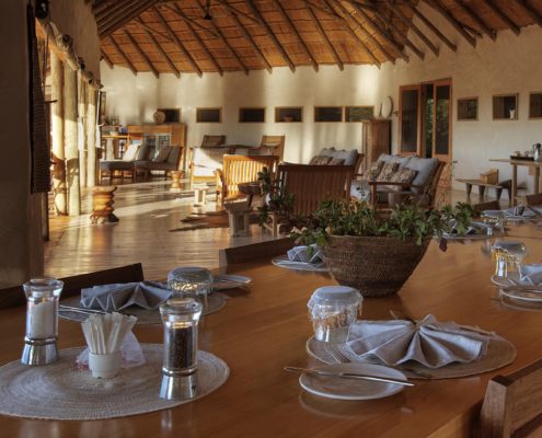 Nxai Pan Lodge cuenta con una confortable zona común, en la que se encuentra el bar y el restaurante. Además dispone de una zona de cómodos sofás en los que descansar y disfrutar de las vistas. Todo ello con una decoración de tonos suaves que lo integran totalmente en el entorno.