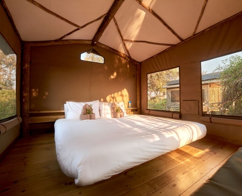 El tented camp cuenta con una total de 15 tiendas, 2 de ellas familiares, para alojar matrimonio con uno o dos niños.