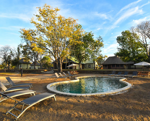 Su piscina es una de las mejores áreas donde descansar y refrescarse en las horas centrales del día, entre las salidas de safari de mañana y tarde.