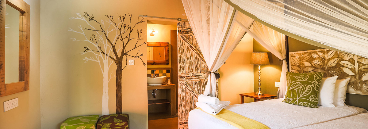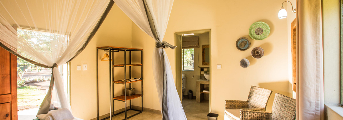 Decorados con diseños locales, Matabele, pintados a mano, cada chalet está equipado con ducha, ventilador de techo para los días más calurosos y camas con mosquitera, que se pueden configurar con 2 camas individuales o una cama extragrande. Las habitaciones están decoradas con buen gusto por diseñador local utilizando artículos y telas locales y reciclados.