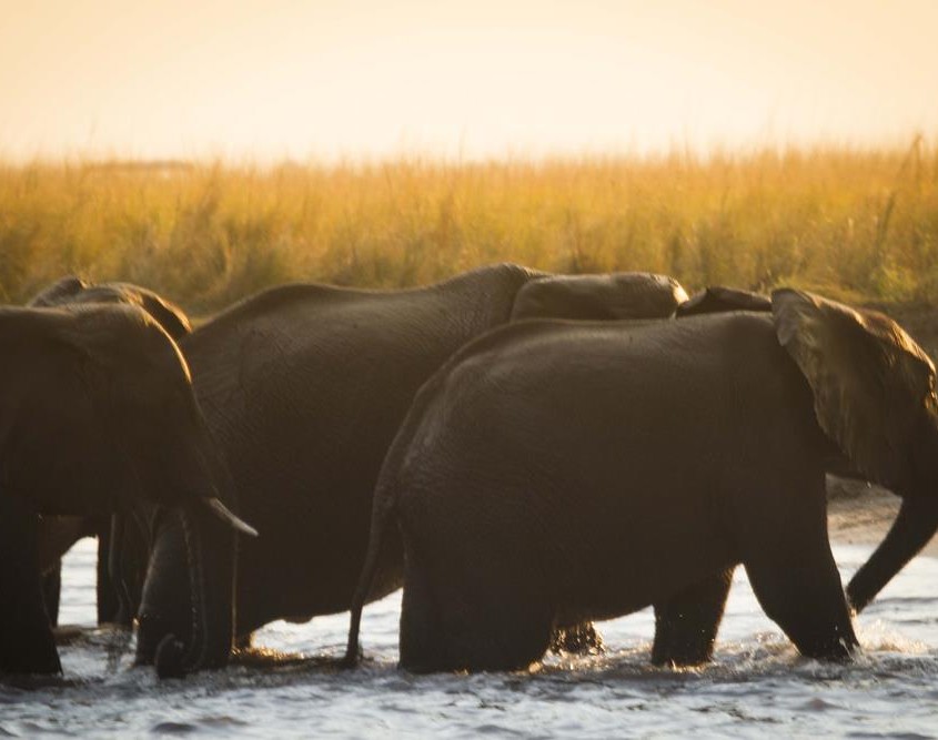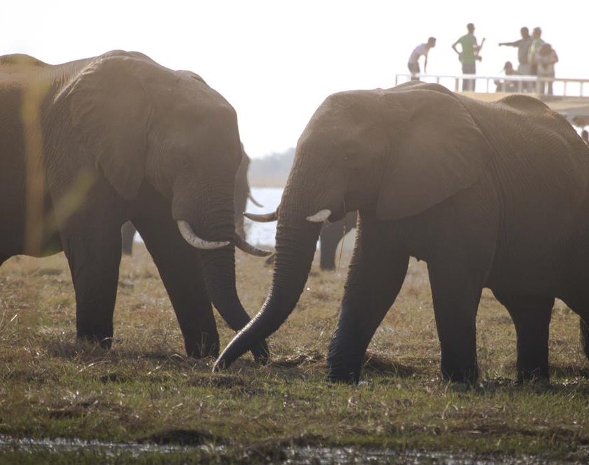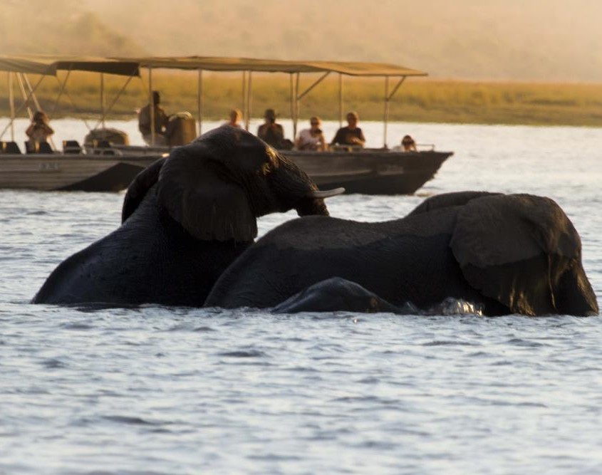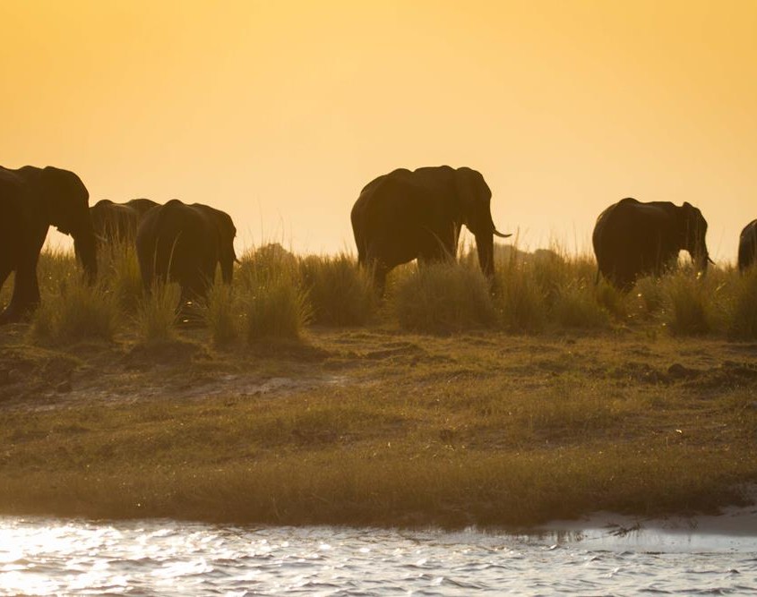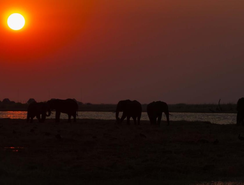 La gran cantidad de elefantes en el río son la tónica que domina este safari en barco. Muchísimos han llegado aquí desde Savute en busca de agua y disfrutamos otra vez de bellísimas imágenes.