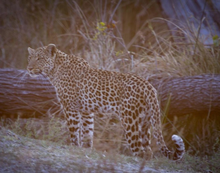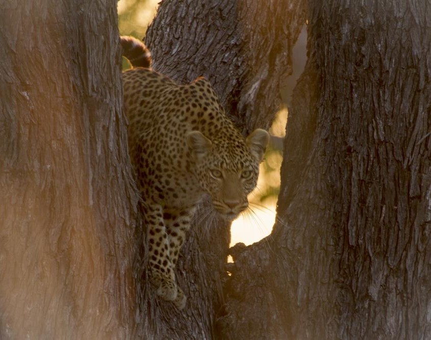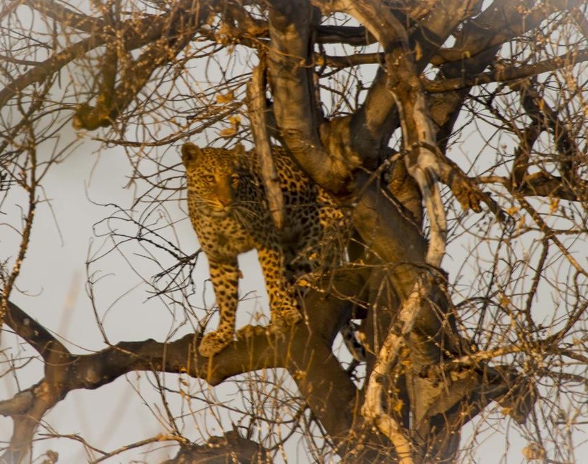 Cerca de esta zona, en el área conocida como Paradise Island, nuestros guías avistan un leopardo subido en un árbol. La emoción se respira en el coche aunque sólo vemos su colita colgando, y además a contraluz. ¿Cómo lo vieron ellos? Esto para mí siempre es un misterio.