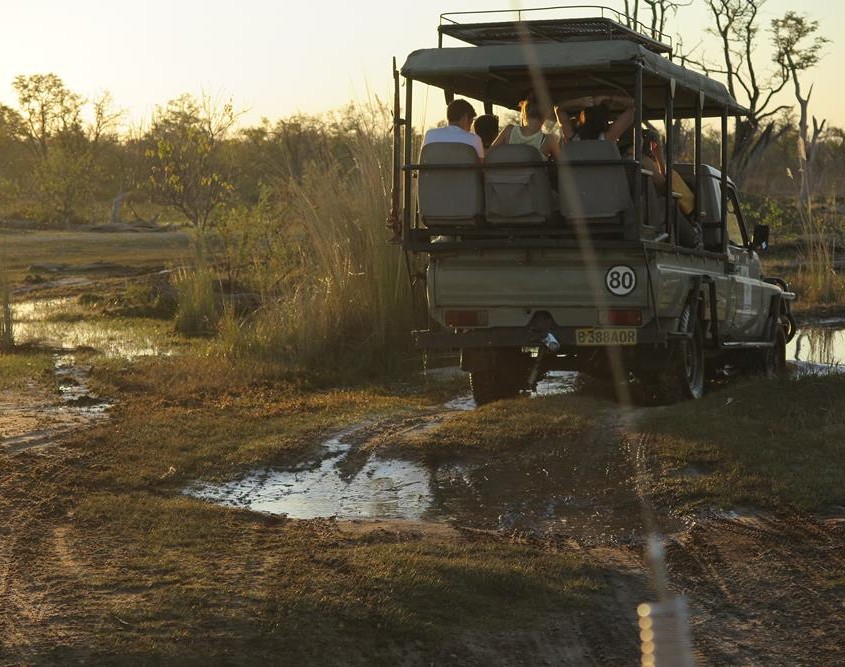Yo sé que mis guías terminan agotados al final del día por las largas horas de rastreo y conducción en estos díficiles caminos, en los que se alternan zonas densamente arenosas con zonas anegadas. Pero también sé que ellos no se rinden cuando rastrean y buscan escenas, ni se cansan de esperar dentro del coche tanto tiempo como los pasajeros quieren permanecer observando la fauna.