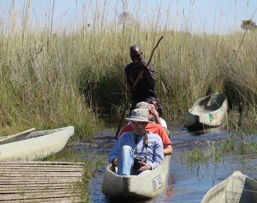 Pero desde luego la belleza de los canales del Delta del Okavango, ese silencio que se interrumpe sólo con las suaves notas musicales de las numerosas aves, y de vez en cuando, los chapoteos de los hipopótamos que asoman sus cabezas para respirar y mirarnos, nos hace disfrutar a todos de la magia del Delta del Okavango, esta maravillosa anomalía de la naturaleza en medio del desierto del Kalahari.