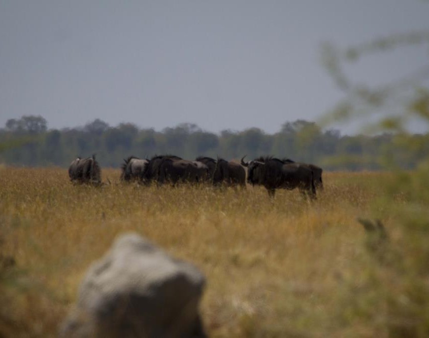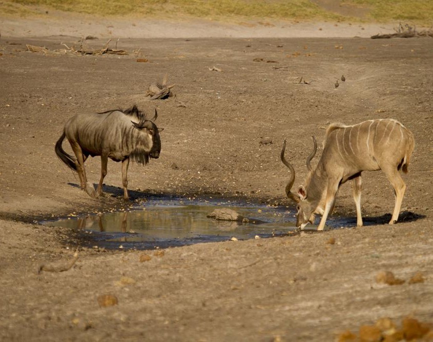 Las manadas están desconcertadas ante la falta de agua y los comportamientos son extraños. El primer día tenemos largos ratos de safari en los que rastreamos huellas y encontramos pocos animales.