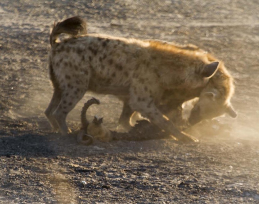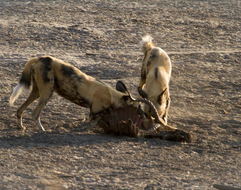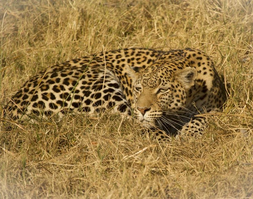 Y el 8º día en Chobe, la vida salvaje nos hace vibrar nuevamente, con excelentes avistamientos. Una leoparda observando el canal casi sin agua, que termina saciando su hambre con un pez que se debate entre la vida y la muerte. Perros salvajes luchando con hienas por los restos de un impala, leonas al acecho y un gato salvaje africano…