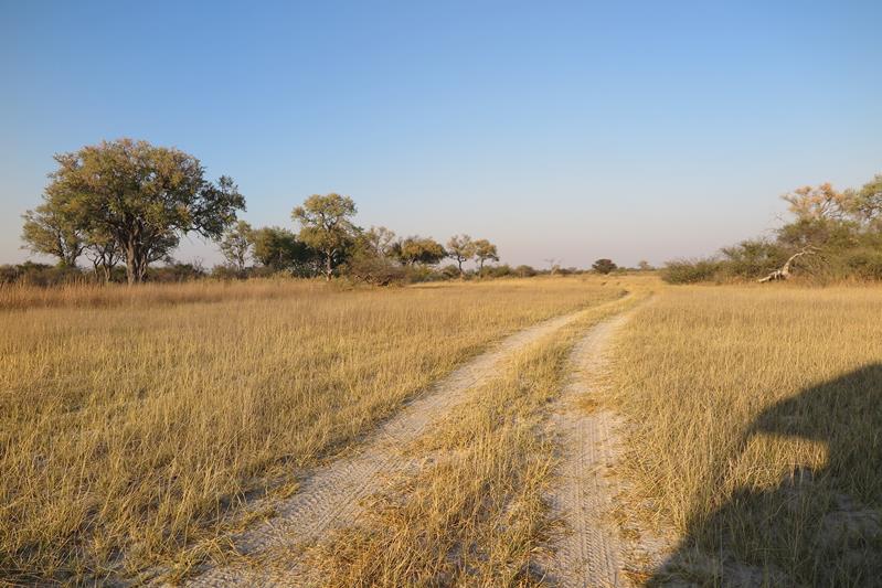 Cruzamos la Gran Depresión de Mababe, antiguo lago hoy cubierto de hierba. Nos viene a la cabeza las imágenes más  icónicas de la sabana africana. Tras superar esta amplia zona, nos topamos con pequeñas manadas de jirafas, ñus, avestruces, tsessebes….