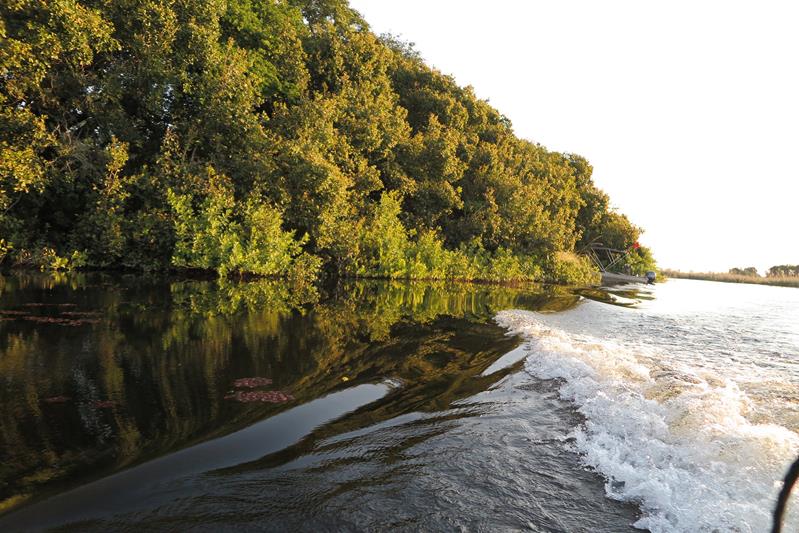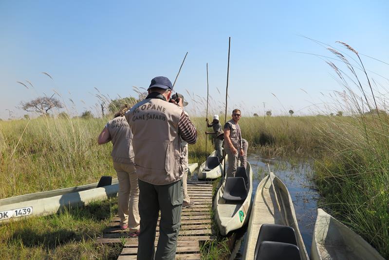 Tras pasar una noche en el Delta del Okavango, regresamos en lancha al embarcadero de Mboma. Tenemos la oportunidad de ver algunos hipopótamos e infinidad de aves, pero no nos detenemos demasiado. Nuestra ruta es larga. Desde Mboma seguiremos en coche, atravesando todo Moremi hacia el norte, hasta la puerta de Khwai.