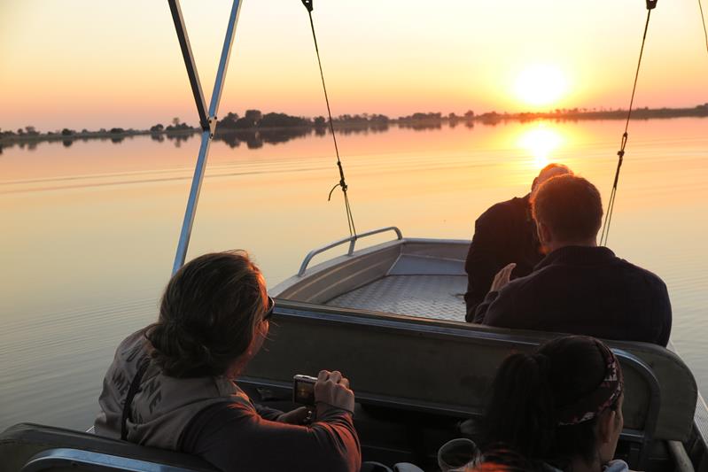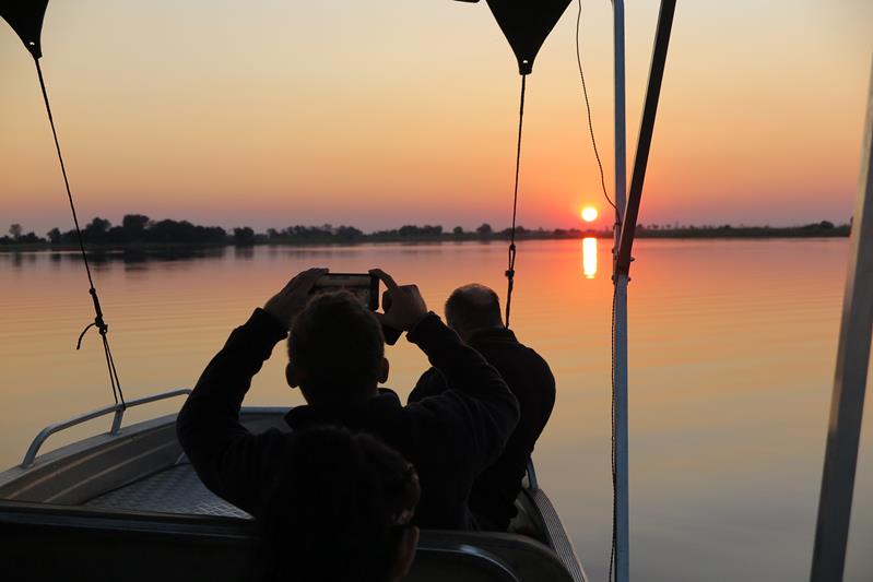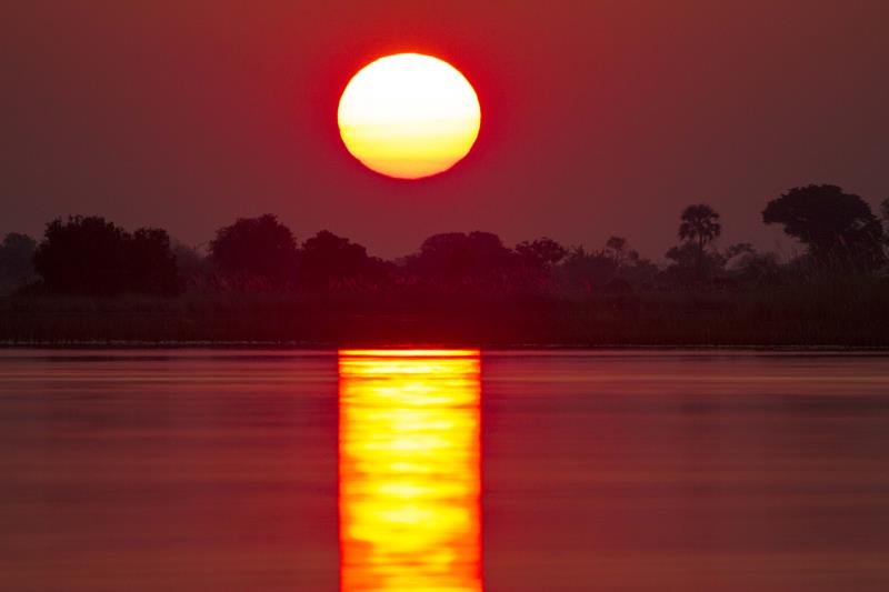 Al llegar a la isla, dejamos nuestro equipaje en las tiendas y rápidamente volvemos a salir para navegar por las lagunas cercanas. La jornada termina con una espectacular puesta de sol en el Delta del Okavango.